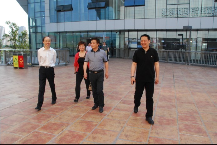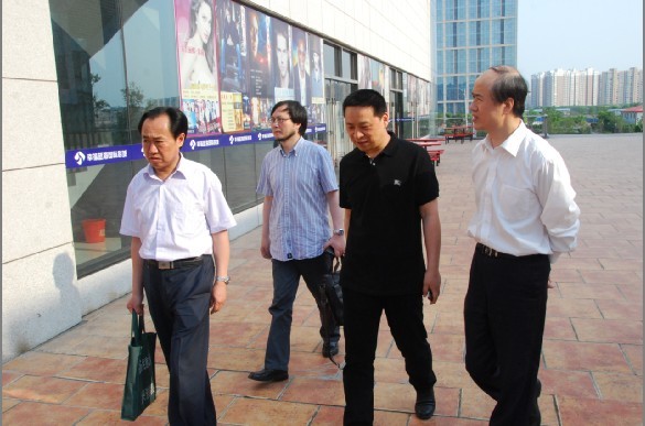 2012年5月26日下午,江蘇省委宣傳部副部長(zhǎng)梁勇(右二)、江蘇省演藝集團(tuán)總經(jīng)理朱昌耀(左一)一行來(lái)鹽城市文化藝術(shù)中心參觀考察。市委宣傳部副部長(zhǎng)姜友新(左二)、市演藝集團(tuán)總經(jīng)理曹利衛(wèi)(右一)陪同參觀考察。