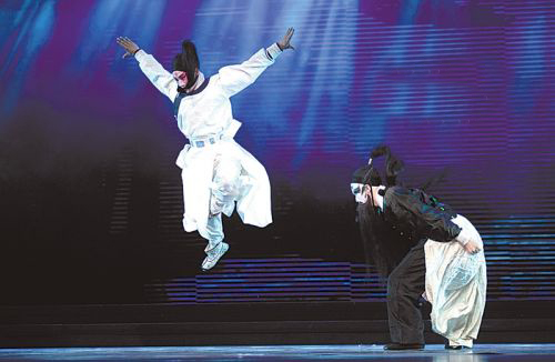 一個多小時的演出中,我市本土的兩大藝術(shù)瑰寶——淮劇和雜技成為最大亮點(diǎn)和看點(diǎn)。江蘇省淮劇團(tuán)的兩段淮劇十分出彩,文戲《金殿認(rèn)子》展現(xiàn)了兩位青年演員深厚的唱功,而武戲《戰(zhàn)馬超》則讓觀眾領(lǐng)略到了淮劇演員的身手不凡,一文一武,相得益彰。雜技方面,江蘇省雜技團(tuán)(建湖雜技)的高難度雜技《荷塘月色——滾環(huán)》、射陽縣雜技團(tuán)的《鏡中人——;▔肪o人留下了深刻的印象,而集團(tuán)的雜技《陽光少年——草帽》則由一群十來歲的孩子表演,滑稽幽默,令人忍俊不禁。