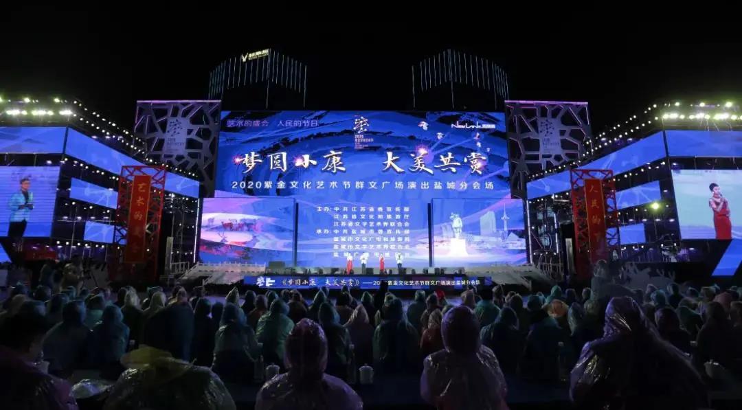 10月15日晚,由中共江蘇省委宣傳部、江蘇省文化和旅游廳、江蘇省文學(xué)藝術(shù)界聯(lián)合會(huì)共同主辦,中共鹽城市委宣傳部、鹽城市文化廣電和旅游局、鹽城市文學(xué)藝術(shù)界聯(lián)合會(huì)、鹽城廣播電視總臺(tái)承辦,鹽城市演藝集團(tuán)、鹽南高新區(qū)宣傳信息和融媒體中心、鹽城市鹽南文旅發(fā)展有限公司、鹽城工業(yè)職業(yè)技術(shù)學(xué)院、江蘇醫(yī)藥職業(yè)學(xué)院、鹽城幼兒師范高等?茖W(xué)校聯(lián)合協(xié)辦的“夢(mèng)圓小康·大美共賞”2020 紫金文化藝術(shù)節(jié)群文廣場(chǎng)演出在新弄里大舞臺(tái)勁爆演出。