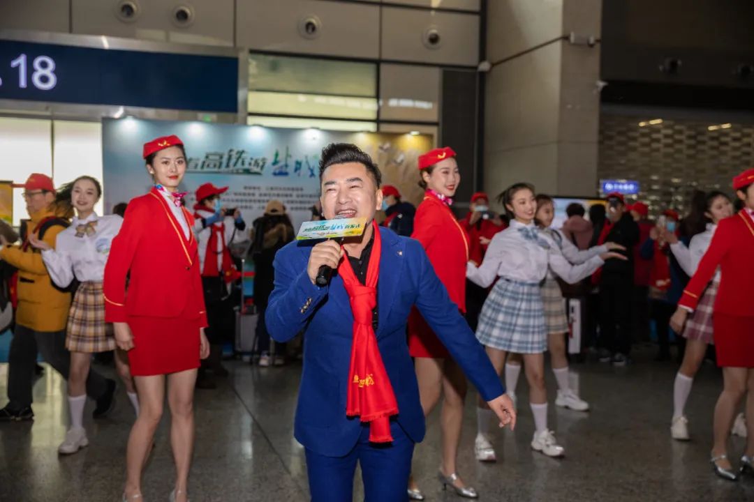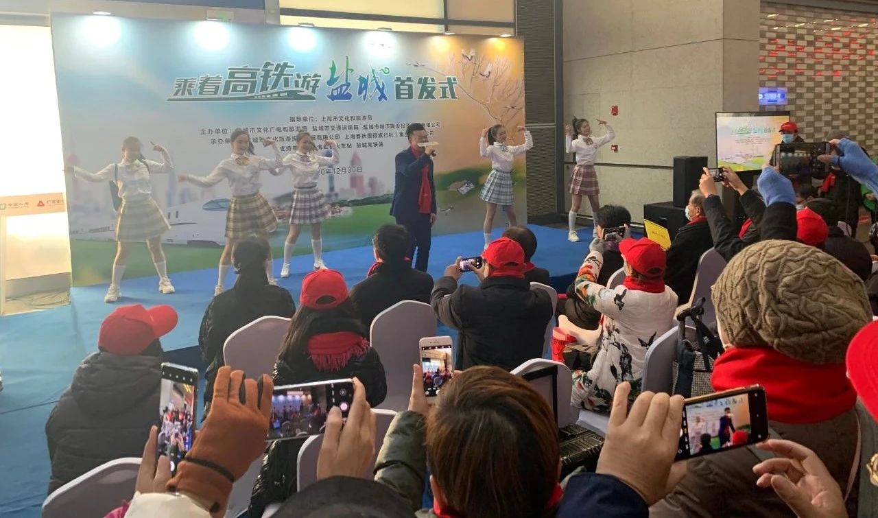 市歌舞劇院文藝工作者《我想把鹽城唱給你聽》、快閃等節(jié)目亮相“乘著高鐵游鹽城”首發(fā)式,唱響“雙城記”。